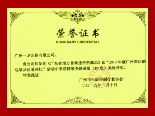 2018 GUANGZHOU PRINTING AND PACKAGING QUALITY HONORABLE MENTION